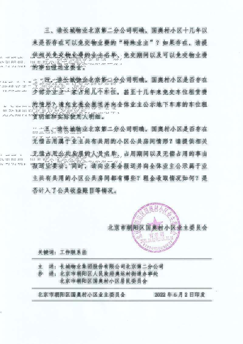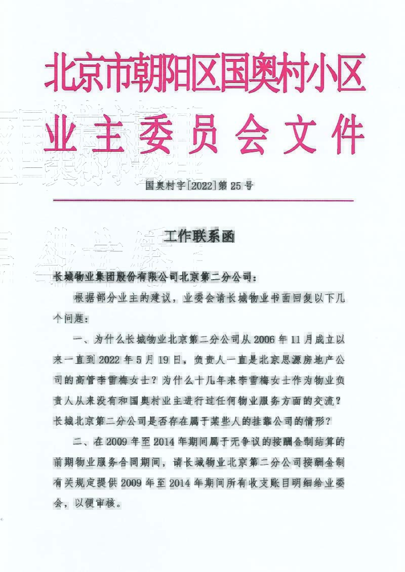 国奥村字[2022]第25号 (致长城物业关于5个问题)