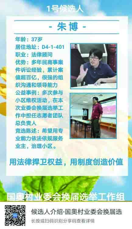 朱博 | 男 | 37 | 群众 | 本科 | 1127 | 主任委员 | D4-1-401 | |