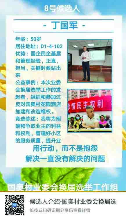 丁国军 | 男 | 50 | 群众 | 大专 | 1101 | 副主任委员 | D1-4-102 | |