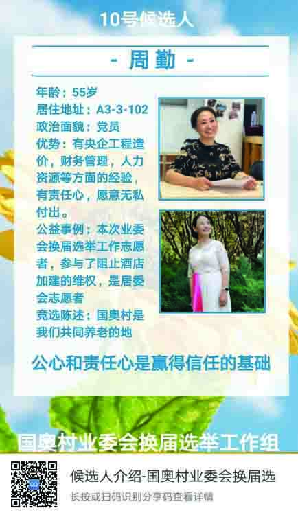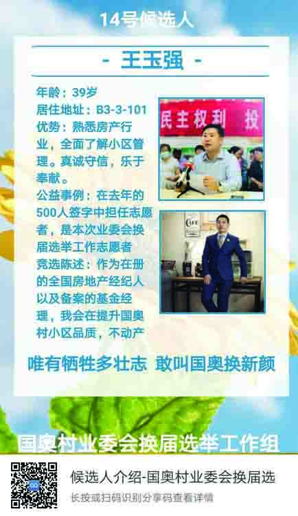 我小区业主委员会参选人共有60人报名,其中55人符合参选业主委员会委员候选人条件,经过合格参选人互相推选产生16人名单,现将名单进行公示,公示时间为7日。业主可以通过小区公示栏了解候选人详细信息.