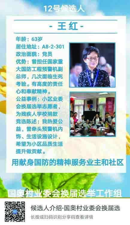王红 | 女 | 63 | 党员 | 本科 | 952 | 候补 | A8-2-301 | |