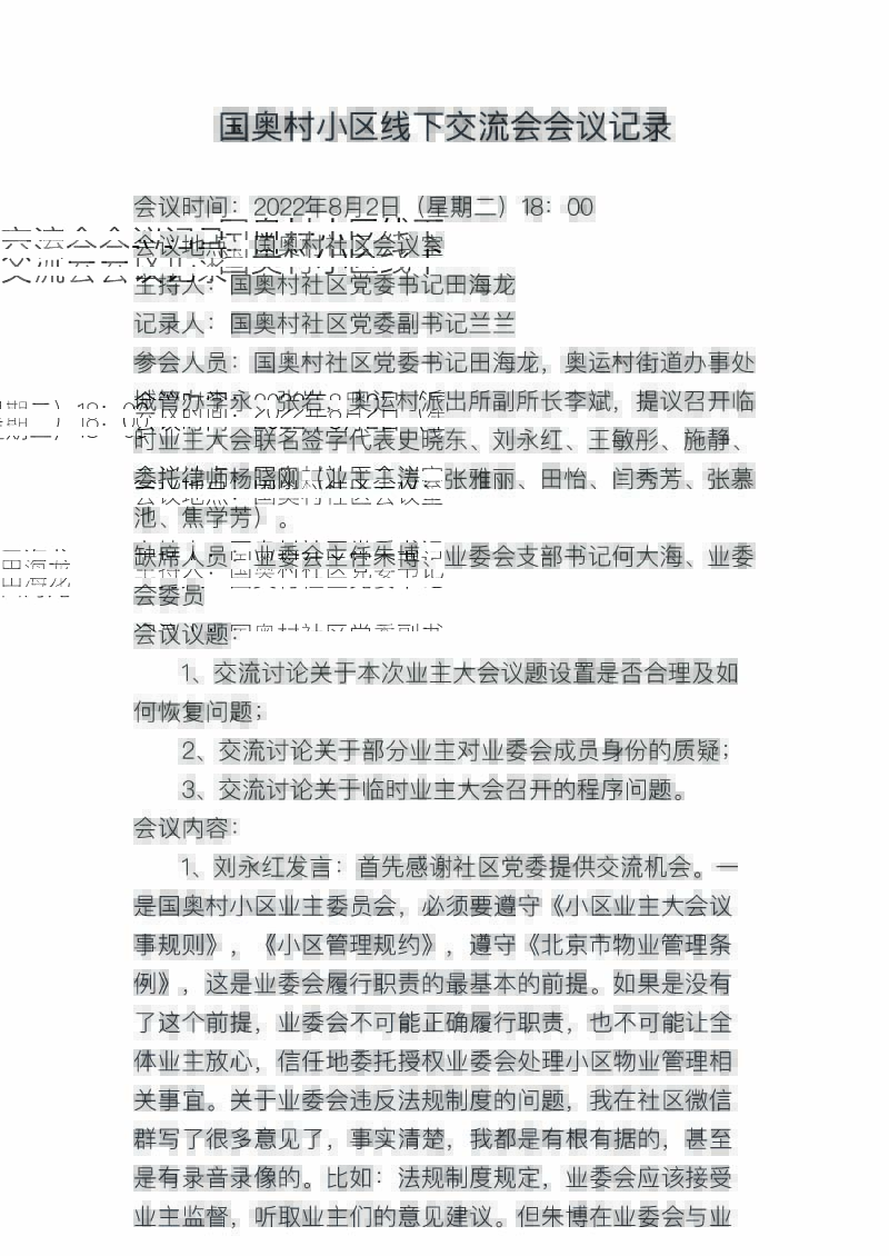 2022年08月02日《国奥村小区线下交流会会议记录》