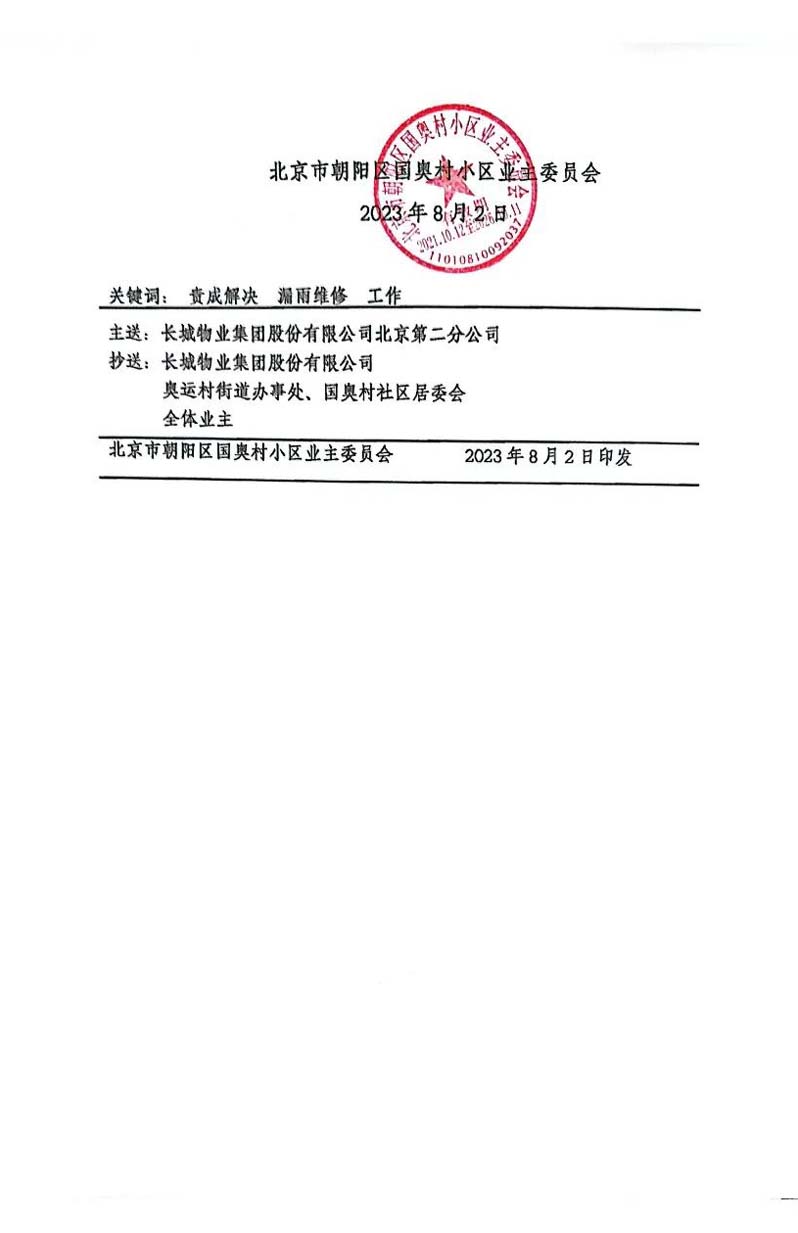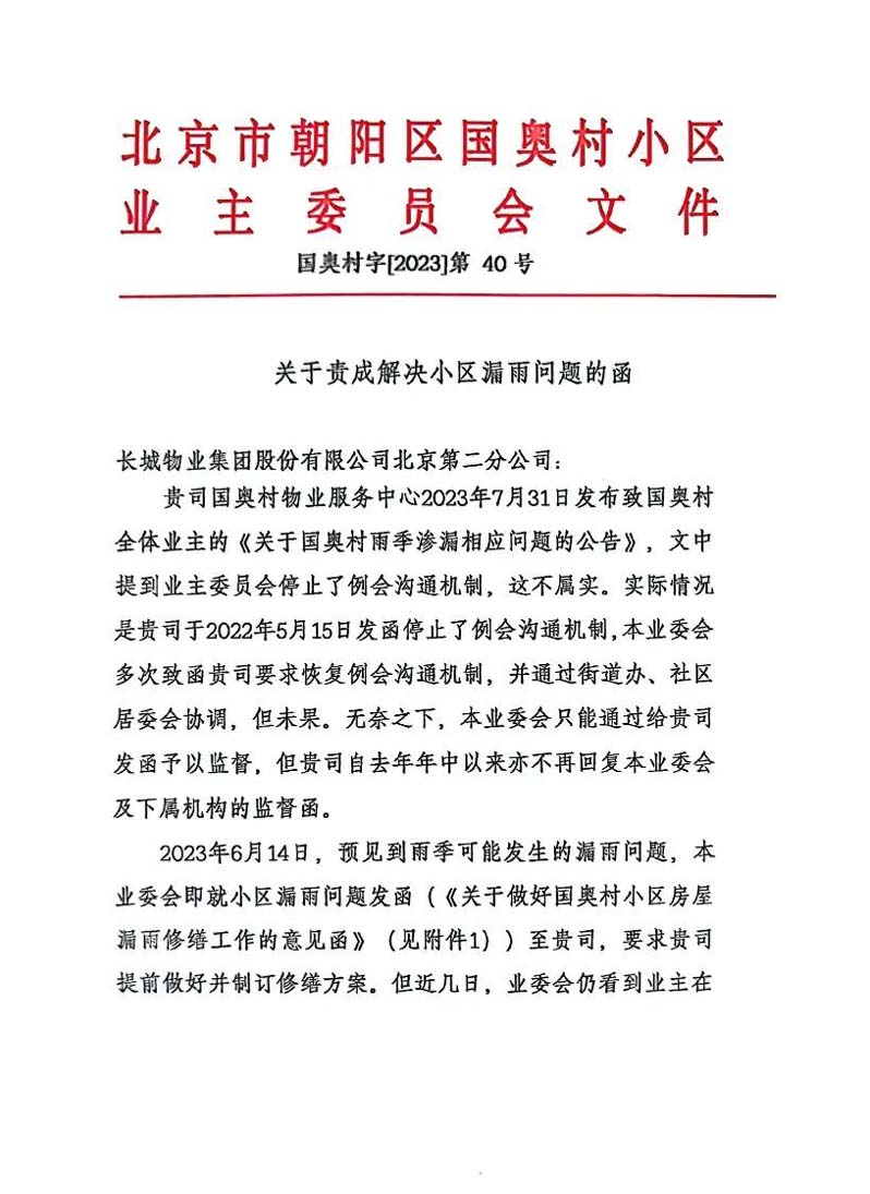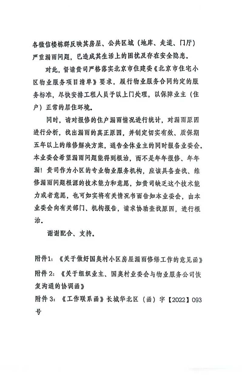 为此,业委会再次向街道办事处和物业公司发函要求对漏雨问题彻查年年修,年年漏的原因,从根本上解决问题。