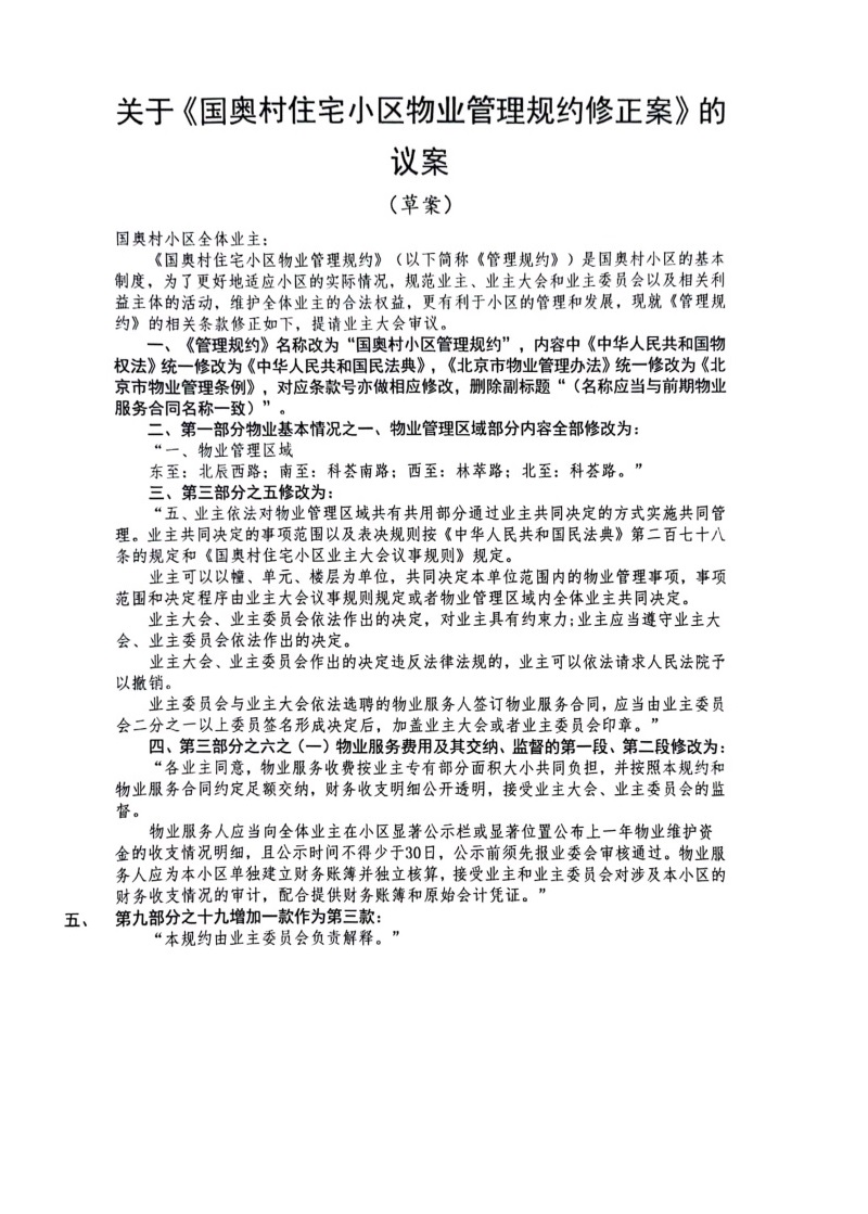关于《国奥村住宅小区物业管理规约修正案》的议案