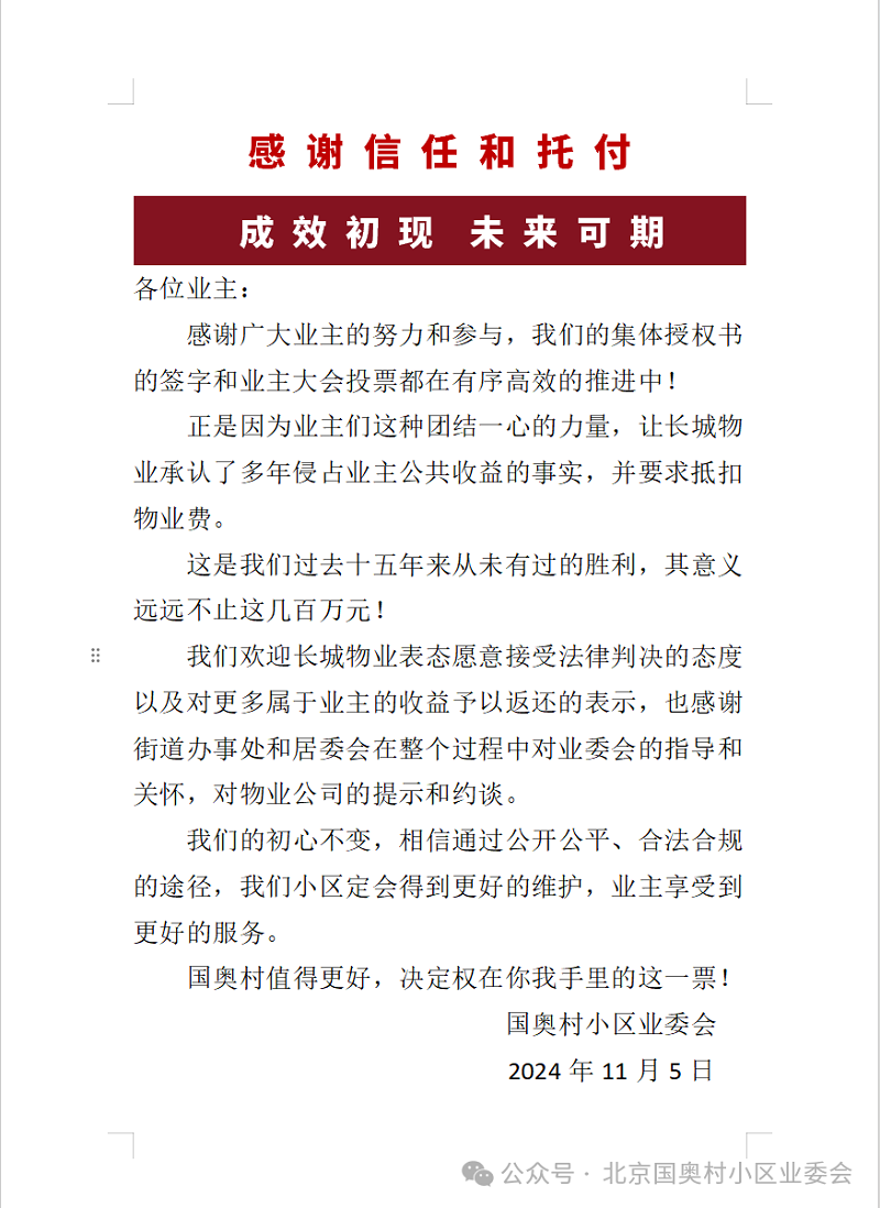 感谢广大业主的努力和参与,我们的集体授权书