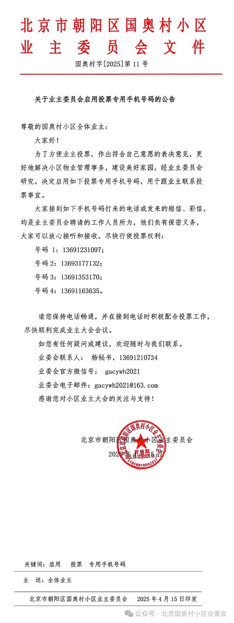 北京国奥村小区业委会 2025年04月15日 17:32 北京