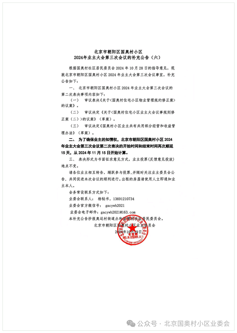 就北京市朝阳区国奥村小区2024年业主大会第三次会议事宜,补充