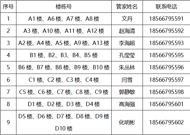 - 2022年05月22日长城物业国奥村项目楼栋管家及联系电话